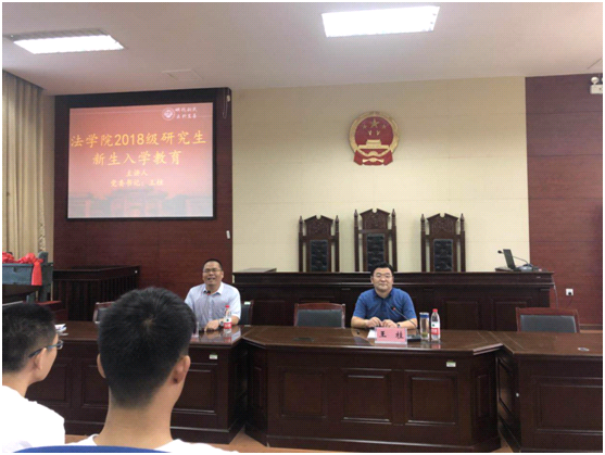 9月2日上午,国产精品被❌❌❌2018级研究生新生入学教育在三楼模拟法庭举行。国产精品被❌❌❌党委书记王桂、院长蔡军、副院长赵树宏及全体2018级研究生新生参加了本次教育活动,整个活动由院研科办负责人、2018级研究生辅导员杜启顺主持。