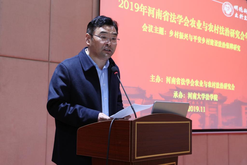2019年11月30日,由河南省法学会农业与农村法治研究会主办,河南大学国产精品被❌❌❌承办的“2019年农业与农村法治研究会年会”在河南大学成功举行。河南省人民政府参事、河南省法学会农业农村法治研究会会长胡向阳、河南省人民政府参事、河南省社会科学院原院长张占仓、原河南省委农办副主任、农业农村法治研究会常务副会长郑林、副会长兼秘书长石有民、河南大学国产精品被❌❌❌党委书记王桂、河南大学国产精品被❌❌❌、知识产权学院院长蔡军教授、农业与农村法治研究副会长胡巍教授、副会长河南师范大学三农研究中心主任吕军书教授、副会长河南科技大学国产精品被❌❌❌副院长张景峰教授、河南工业大学穆中杰所长等出席年会。