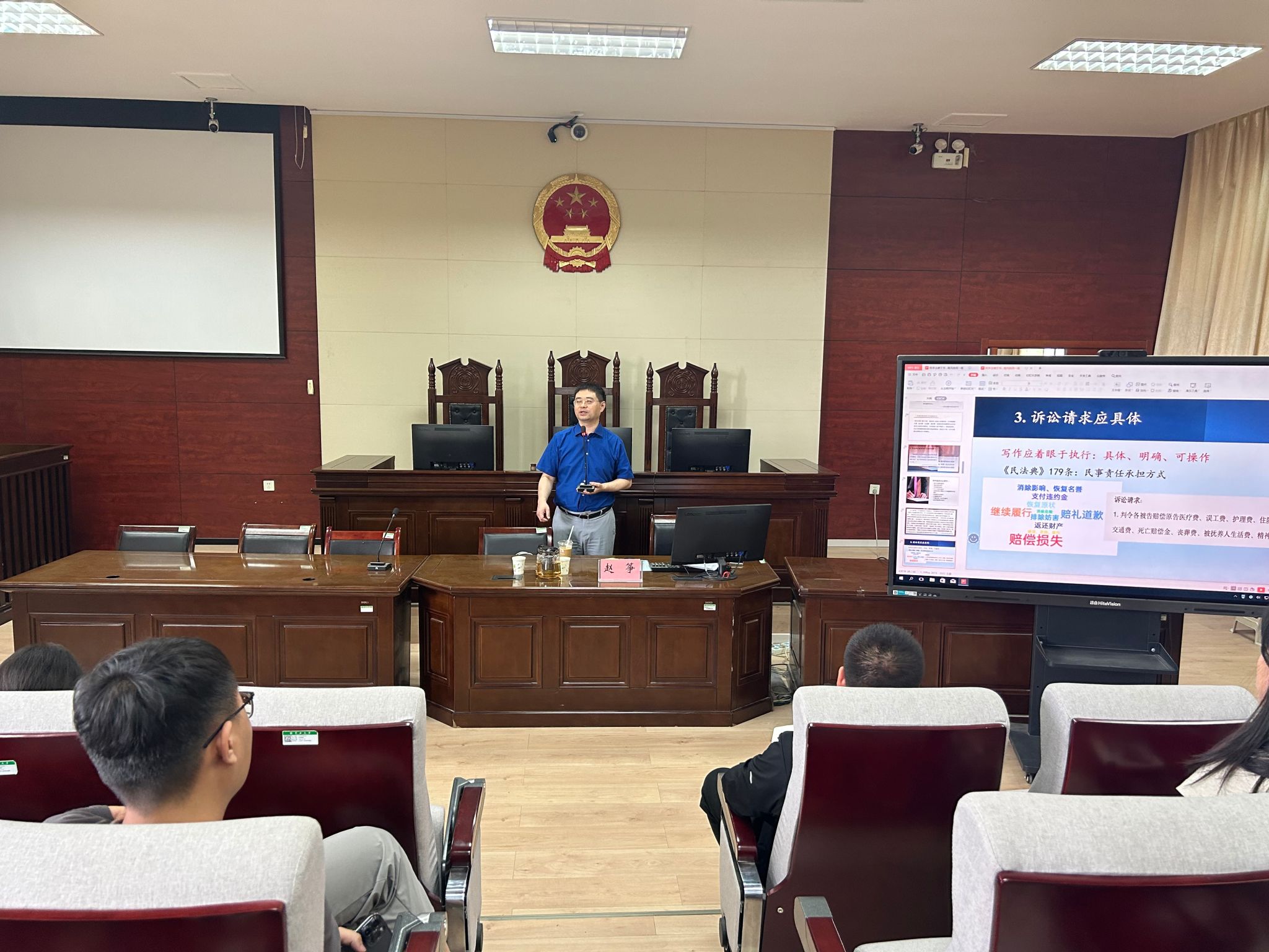5月18日下午,全省审判业务专家、河南省高级人民法院民事审判第一庭副庭长赵筝博士应邀做客我院研究生“法律文书写作”课堂,以“法律文书写作”为题,为同学们带来了精彩讲授。