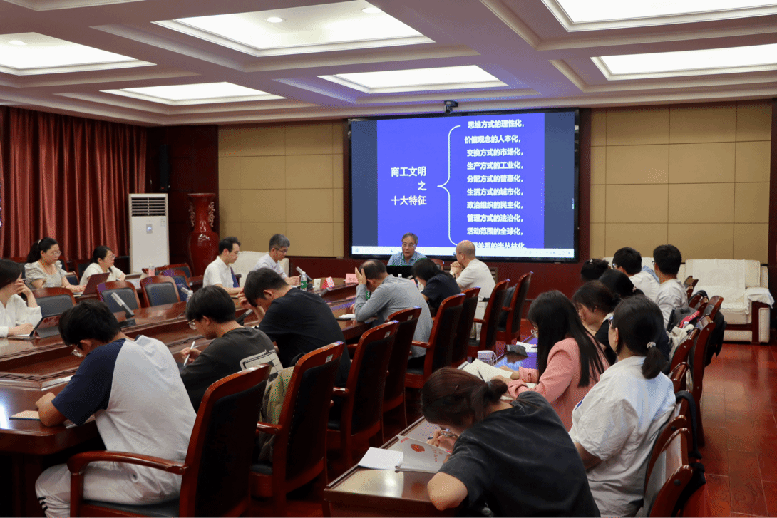 讲座伊始,张恒山教授以“法律与文明的关系”为切入点,强调了近代文明的发展与法律的进步之间密不可分的关系,并以理论联系实际的原则,生动地阐述了以下四大重点内容:一是从文明产生的标志、文明类型的历史纵向划分出发,对比介绍了农耕文明和商工文明各自的特点,以把握文明转型的历史观;二是结合西欧的历史,分析解释了文明转型前西欧存在的世俗社会管理系统、教会管理系统、城市管理系统的定义和内涵;三是以时代的变革为立足点,展示了西欧各国在商工文明初始阶段于法律领域发生的巨大变革;四是提出了在商工文明雏形阶段出现的主要社会矛盾以及引发的英美法德相关法律变革。最后,张恒山教授通过总结,再次强调重申了讲座的重点内容,以希冀激发每位学生的深入思考和学术热情。