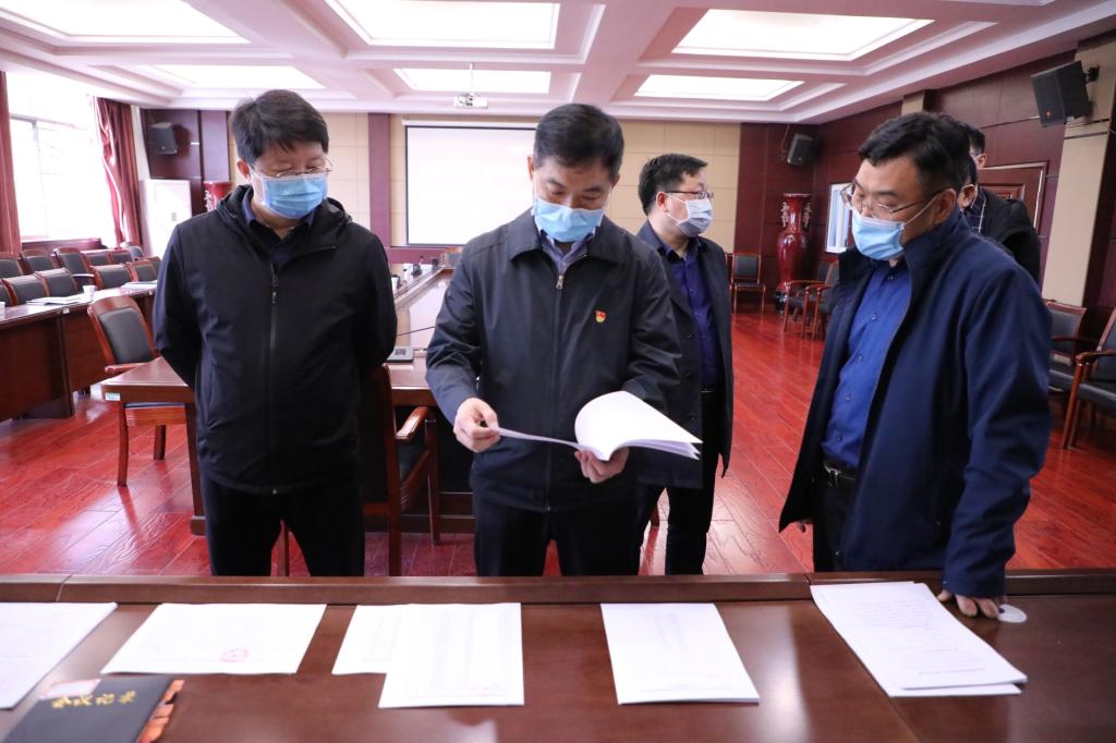杨朝阳书记查看学院疫情防控工作制度文件