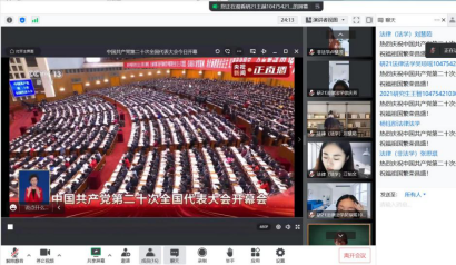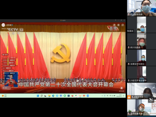 中国共产党第二十次全国代表大会今天在北京隆重开幕。研究生第五党支部组织党员同志集体观看。习近平总书记强调:“我们处在前所未有的变革时代,干着前无古人的伟大事业。”心中装着百姓,手中握有真理,脚踏人间正道,我们信心十足、力量十足。新的伟大征程上,无论风云如何变幻,无论挑战如何严峻,我们都要弘扬伟大建党精神,坚守初心使命,常怀远虑、居安思危,永葆“赶考”的清醒和坚定,全力办好自己的事,以咬定青山不放松的执着,奋力实现既定目标。奋斗,是习近平总书记连续9年发表新年贺词中的高频词。奋斗的诗,刻在十年的拔节里,写在百年的年轮上。时代造就青年,盛世成就青年。站在无比广袤的土地上,生逢中华民族发展的最好时期,我们是最富活力、最具创造性的新时代青年,定要放飞梦想、搏击风浪!