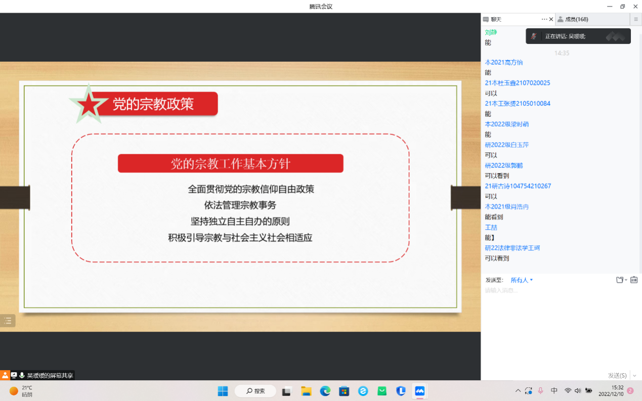 党委副书记吴瑗瑗以“党的民族政策和宗教政策”为主题,为国产精品被❌❌❌本届入党积极分子详细讲解中国特色民族与宗教情况以及新时代党的民族与宗教政策,加深各位积极分子对党的政策的理解、深刻认同与自觉维护。会上,吴瑗瑗副书记强调了当下民族、宗教问题的重要性,介绍中国民族、宗教的基本情况与自身的发展特点。基于此种重要性与特色的基础,她详细解读了中国各项民族政策与宗教基本知识、党的宗教理论和方针政策。最后,她呼吁青年重视民族、宗教问题,加深同学们对民族平等、民族团结、各民族共同繁荣与爱党爱国、维护祖国和平统一的思想认识,怀抱理想,砥砺前行。