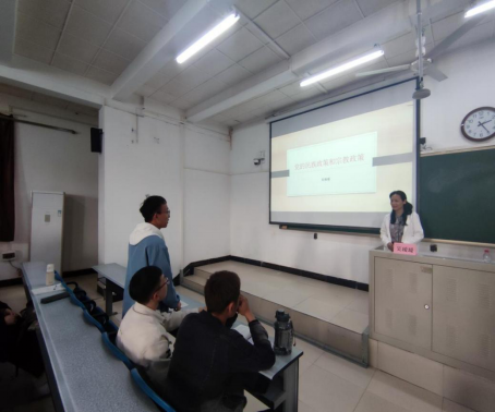 党委副书记吴瑷瑷以“党的民族政策和宗教政策”为题,为入党积极分子详细讲述了中国的民族和宗教概况以及党的民族和宗教政策。吴瑷瑷首先介绍当前中国面临的民族与宗教问题,强调了民族与宗教对国家团结与繁荣的重要意义。接着,她结合生动的案例详细地分析了党的民族和宗教政策,讲解党对少数民族地区的关心与帮扶。最后,她呼吁同学们重视民族与宗教问题,坚定政治立场,深化对民族平等、民族团结、各民族共同繁荣政策的思想认识,在思想上、政治上、行动上都要自觉遵守党规党纪,为祖国统一和民族团结作出自己的贡献。