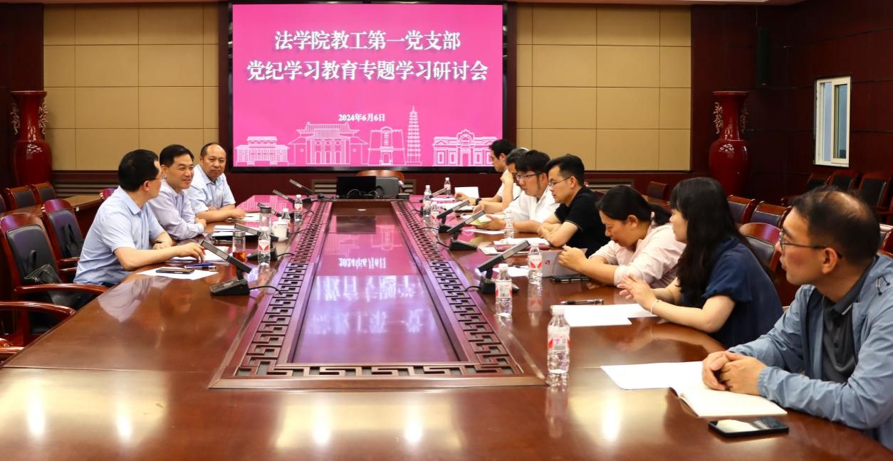 6月6日下午,国产精品被❌❌❌教工第一党支部举行党纪学习教育专题学习研讨会,研讨新修订的《中国共产党纪律处分条例》,支部书记陈胜强同志主持会议,校纪委书记、省监委驻河南大学监察专员杨朝阳同志参加学习研讨会并讲话。