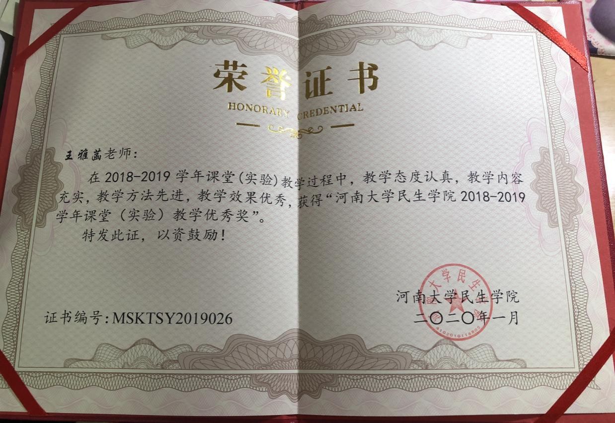 对此,王雅菡老师将新闻热搜事件、典型案例与国际私法知识相结合,和学生一起发现和剖析其中涉及的国际私法问题,从而提高学生对国际私法课程的兴趣。通过组织小组讨论、案例分析、翻转课堂等多种形式的教学活动,锻炼学生们的创新思维与实践能力。王雅菡老师也十分注重我国涉外法治人才的建设工作,在课堂教学中结合国际私法的具体制度,以及我国涉外法治人才培养的目标,在帮助学生了解和掌握我国涉外法律制度的同时,使学生理解制度背后的道德意义、中国精神和社会主义法治理念。培养学生树立正确的人生观价值观,以及如何运用国际私法的相关知识维护中国海外利益。在入职第一年的教学中便获得“课堂教学优秀奖”。并在我校举办的教师教学技能竞赛中获文科组二等奖。