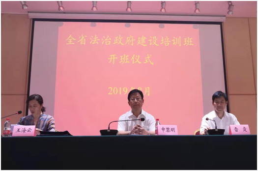河南省司法厅厅长申黎明讲话中指出,举行本次培训班既是适应法治政府建设新形势,抢抓改革机遇、加强队伍建设、提升能力水平的迫切需要;也是结合“不忘初心、牢记使命”主题教育,回应基层所盼、强基固本补短板的有效之策。希望参加培训的全体学员凝神聚力、珍惜机会,提升站位、凝聚共识,务求学习实效;将学到的相关理论知识转化到今后具体的法治行政工作实践中,并且不断注重能力提升,为法治河南再立新功。