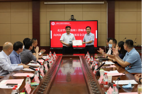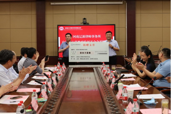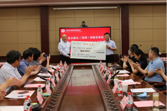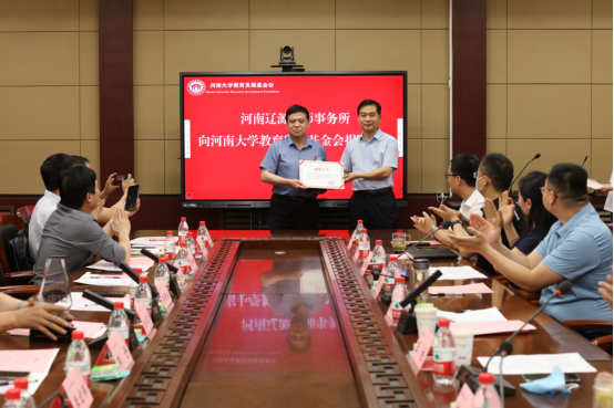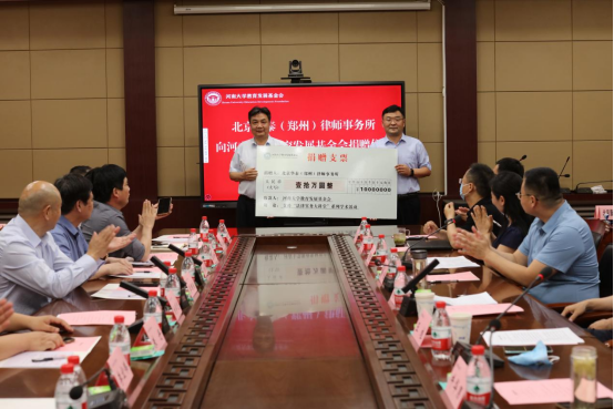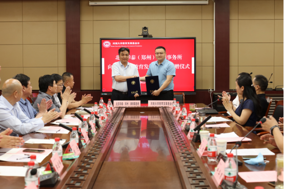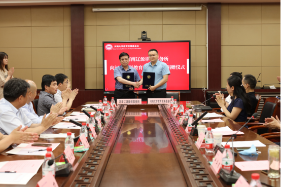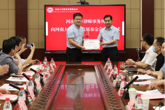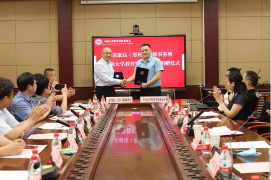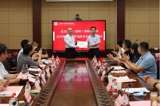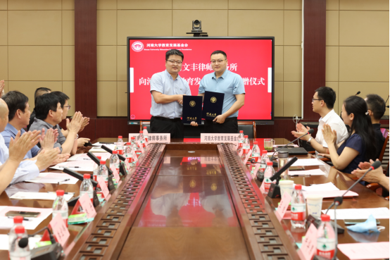 唐胜代表河南大学教育发展基金会与律所签订捐赠协议。