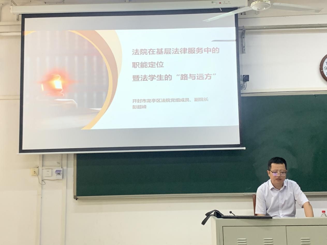 5月24日,开封市龙亭区法院党组成员、副院长彭超峰,以基层法律服务的意义为基点,阐释了基层法律服务在推进依法治国、满足群众法律服务需求、提升社会治理水平、促进社会公平正义和谐稳定中的重要作用。他详细介绍了基层法律服务的五大类别,包括法治教育宣传、法律援助、法律顾问、纠纷化解以及其他公益性法律服务。课程中,彭院长还特别提到了我国法院基层法律服务的历史变革,从马锡五审判方式的深入群众、简便手续,到三道防线的民间调解、行政调解和法院裁决,再到现代的能动司法实践,彭院长一一解读了我国法院不同历史阶段的职能转变和理念发展。在讨论环节,彭院长提出的如律师在休庭期间是否可以取证、“四类案件”是否可以进行“遥控庭审”等问题引发了学生们的深思和讨论,这些问题不仅涉及法律实务操作,更关系到司法公正与效率。彭院长将司法案例联系现实热点,通过由浅入深的讲解让同学们对基层法律服务有了全面的认识。
