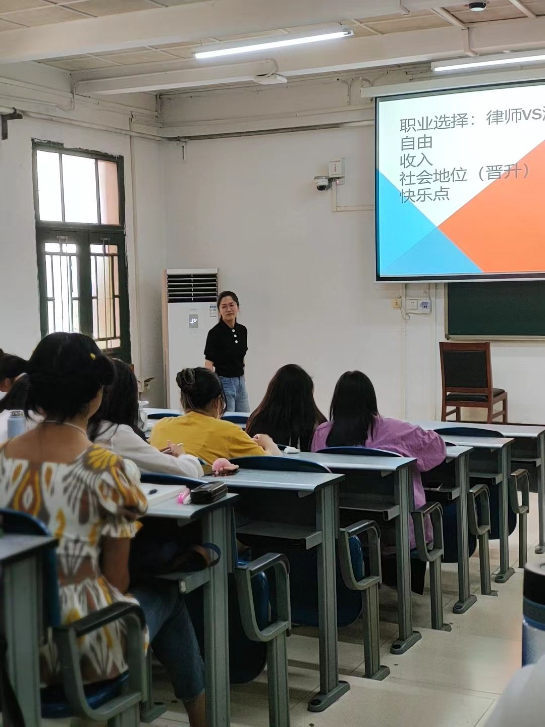 5月17日,开封市鼓楼区人民法院的梁松丽法官以“基层法律服务:从司法民工视角”为主题,生动地展现了基层法院的日常工作,并对多种法律职业的特点进行了分析。梁法官首先指出立案庭的重要性,详细讲解了立案登记、诉讼费用核算、法律文书送达等工作流程,以及如何有效进行诉前矛盾纠纷化解。她通过真实案例,以生动的语言让同学们对基层法院的工作有了直观的认识。在“以案释法”环节,梁法官以自己经手的案件为例,指导同学们如何根据案件材料查找相关法律条文,凝练辩护思路和争议焦点。她强调,理论与实践的结合对于法律人至关重要。梁法官非常巧妙地利用网络热剧的主人公,结合自身经历,为同学们讲授了如何选择职业,如何衡量职业与自由、收入、社会地位以及成就感之间的关系,梁法官以生动的语言和现实的例子让同学们对多种法律职业有了更深刻的了解。