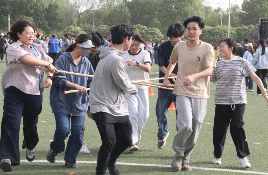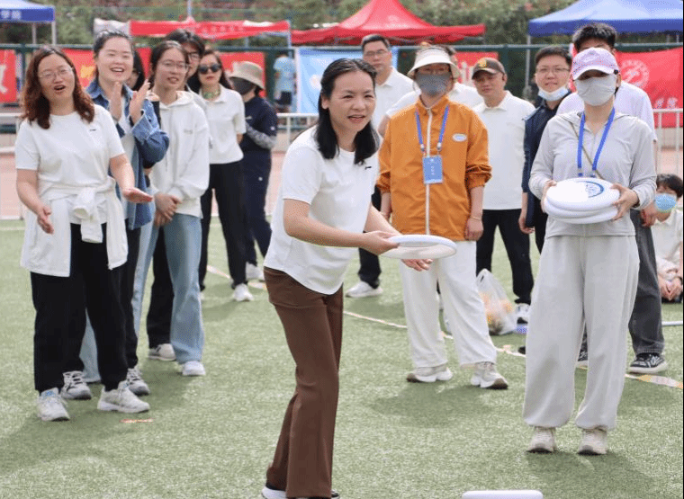 在教职工项目中,参赛教师互相鼓励,相互支持,他们配合默契、动作流畅,在团队的共同努力下,顺利完成了多个项目,场外同学们的加油声则此起彼伏,为比赛增添了许多欢乐与温暖的瞬间。