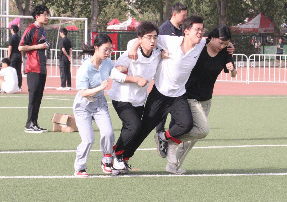 跑道上,田径选手们奋勇当先,犹如离弦的箭驰骋赛场,不断挑战着自我极限;沙坑旁,跳高与跳远选手在各自场地迎风助跑、起跳,他们在空中划出的不仅仅是一道完美的弧线,更划出了自己人生的高度;草坪上,在各式各样的集体项目中,同学们自由组队后,在跳大绳、众星捧月、四人五足等项目中团结上阵、沉着应对,以最好的姿态迎接属于自己的青春篇章。
