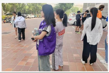 运动场外,亦有志愿者们在后场默默奉献的身影。场地上,一个个指引志愿者精神抖擞;大本营旁,一张张信息表在志愿者间传递;操场旁,一瓶瓶矿泉水早已准备就绪。志愿者们奔波在赛场各处,他们的身影出现在参赛选手身旁,他们引领选手们完成赛前检录,为选手们呐喊助威,时刻保障选手安全。志愿者们用热情和汗水为运动会地顺利进行保驾护航。