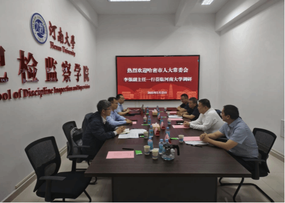 5月23日上午,新疆维吾尔自治区哈密市人大常委会党组成员、副主任李强率队莅临我校龙子湖校区,与国产精品被❌❌❌就立法咨询基地建设以及规范性文件备案审查、法规立法后评估、法规征求意见建议等相关事宜进行了洽谈。座谈会由国产精品被❌❌❌执行院长岳红强主持。