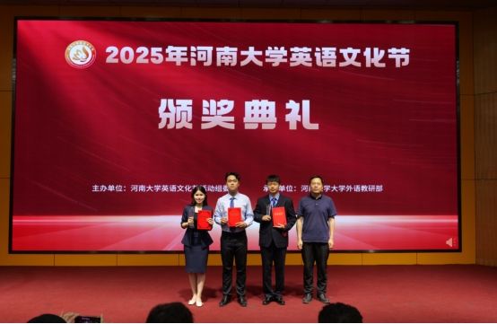 5月29日晚,河南大学第二十一届英语演讲比赛总决赛(非英语专业组)暨2025年河南大学英语文化节颁奖典礼在金明校区计算机大楼二楼报告厅举行。副校长苗雨晨,相关职能部门和部分学院领导出席颁奖典礼,并为获奖选手颁奖。