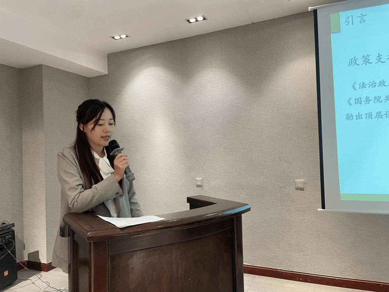 王芩以《法治政府建设背景下“责令限期改正”制度研究》为题进行发言。探讨了行政执法中“责令限期改正”与行政处罚的关系,呼吁关注行政协商机制在安全生产执法中的应用,建议将其作为强制性程序,并强化执法指导与程序透明。