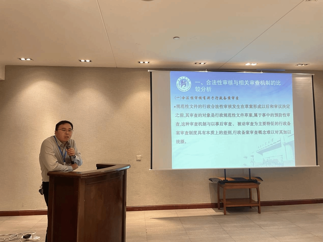 王红建以《行政机关自我纠错的证成与实现路径》为题进行发言。分析行政机关自我纠错的理论与实践,强调其在法治建设中的重要性及制度化必要性,指出实践中因机关缺乏担当、担心追责、缺少明确程序等,导致其未成为有效纠纷解决途径,并从职权来源、制度设计等方面阐述推动该机制建立的关键要点。