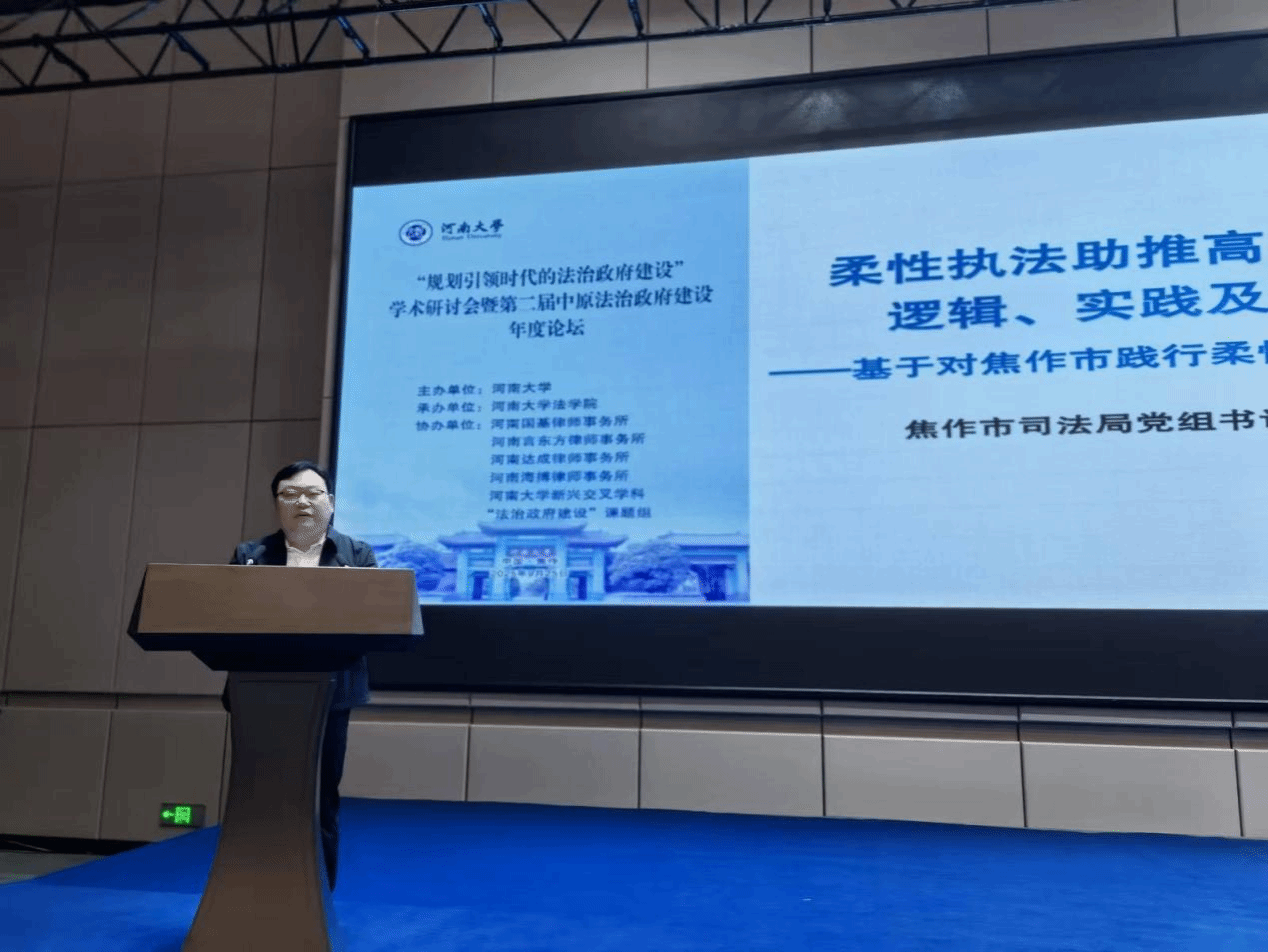 9月25日,由河南大学主办,河南大学国产精品被❌❌❌承办,河南国基律师事务所、河南言东方律师事务所、河南达成律师事务所、河南海搏律师事务所、河南大学新兴交叉学科“法治政府建设”课题组协办的“规划引领时代的法治政府建设”学术研讨会暨第二届中原法治政府建设年度论坛在焦作举行。来自河南省司法厅、河南省市场监督管理局、河南省医疗保障局、内蒙古自治区人民检察院、焦作市人民政府有关职能部门等50余家省内外实务部门,以及来自武汉大学、华中科技大学、中南财经政法大学、郑州大学等20余所国内高校的领导和学者200余人参加会议。