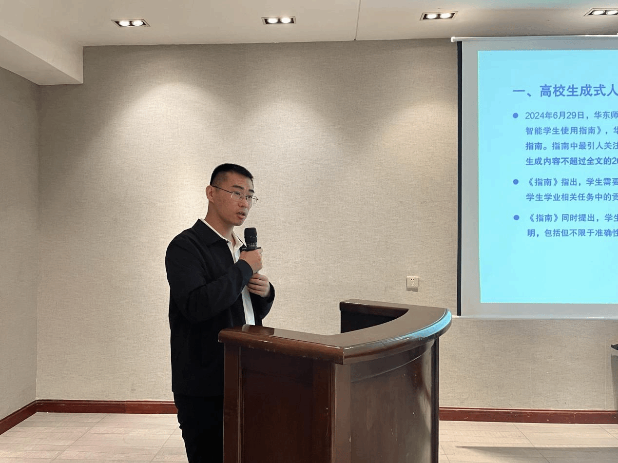 李祎以《人工智能时代高校教师教学能力提升路径研究》为题进行发言。围绕人工智能时代高校教学转型,阐释了数字人技术对教学模式的挑战、教师面临的四大能力挑战、AI辅助教学的定位与核心、个性化育人方向,重点分析了“意识层、知识层、实践层、保障性”四维一体提升路径,以及AI在教研全流程的应用与学校培训机制对智慧教育发展的推动作用。