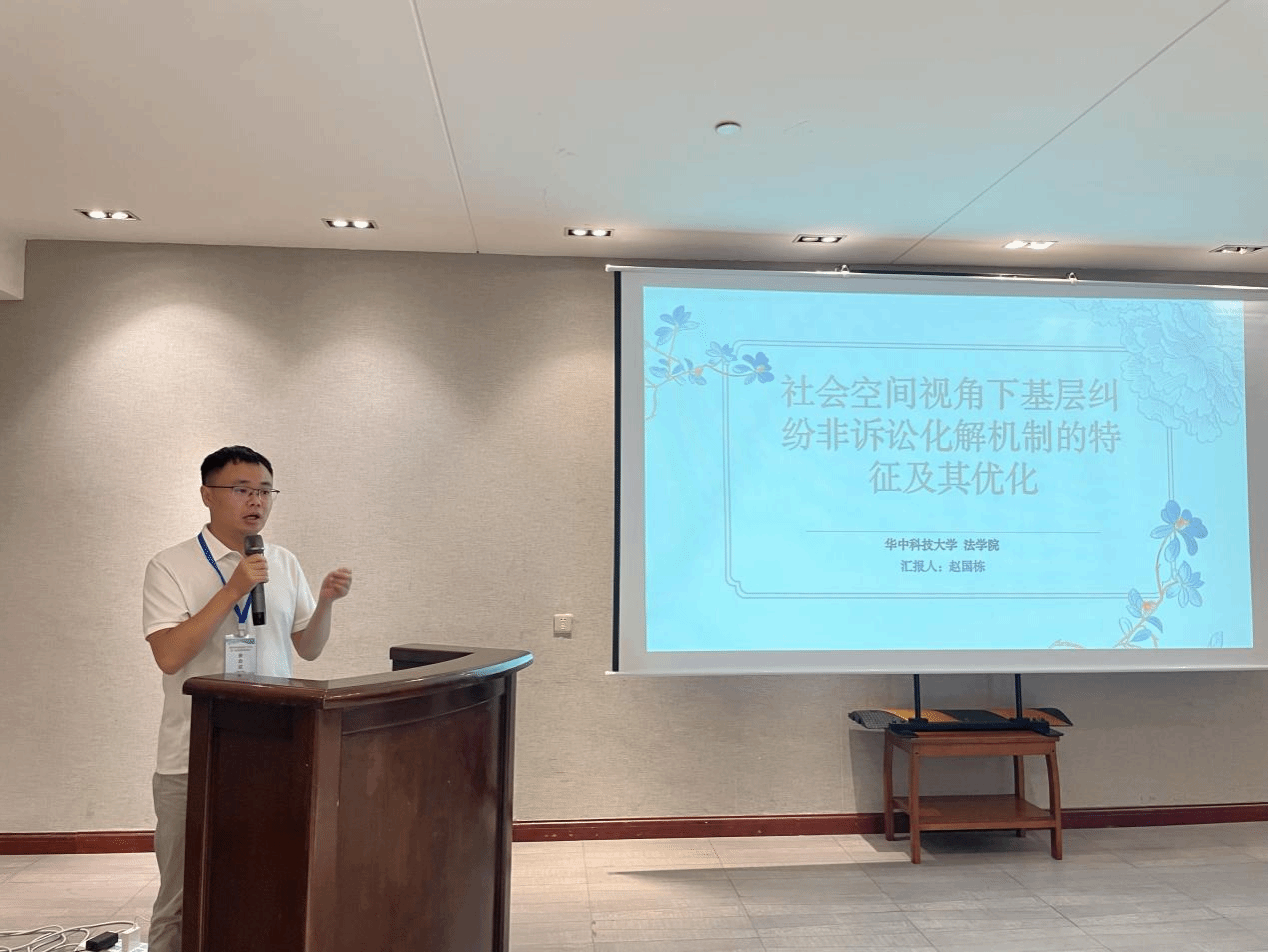 赵国栋以《社会空间视角下基层纠纷非诉诉讼化解机制的特征及其优化》为题进行发言。分析了基层矛盾纠纷化解的转型及其内在逻辑,强调需从空间视角理解非诉机制的复杂性与实践优化,阐释了基层矛盾纠纷的新变化、空间理论的新视角、化解方式的实质化转向、化解过程的空间制约及非诉讼纠纷解决新模式,并重点指出非诉讼纠纷解决模式是新时代基层治理转型的缩影,具有复杂内在运行机制。