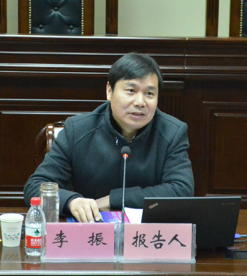 李振首先简要介绍了商城及商城县人民法院。随后他围绕“司法审判工作中的困境、司法审判工作困境的突破及如何从一名法科生成长为一名合格的法律人”三个方面进行了详细讲解。他同时从基层法院的工作实际出发,结合具体案例深入剖析了我国司法审判工作过程中出现的问题及原因,并针对此类现象提出了有关司法改革的基本方法。