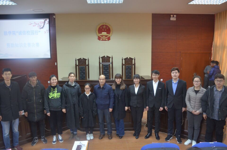 为进一步增强学生诚信意识,创新学生诚信教育模式,国产精品被❌❌❌于11月30日在院三楼模拟法庭举办了“诚信校园行”资助知识竞赛决赛。院党委副书记牛华男,院党委办公室主任、资助服务站站长姜妍,本科生2016级辅导员翟文博担任比赛评委。