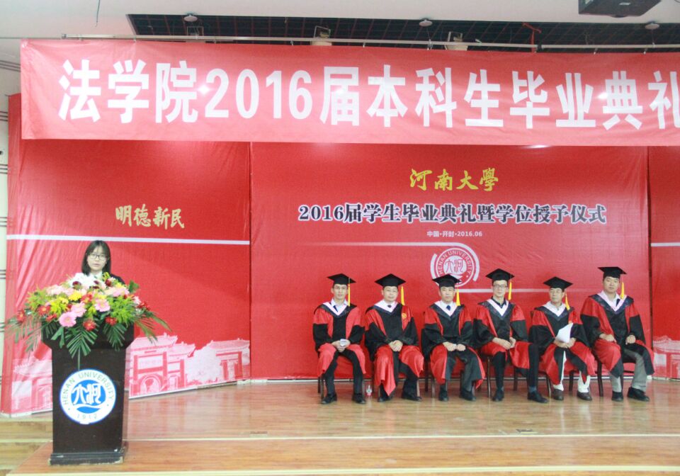 毕业生代表张惠玲发言。她深情回忆了大学时光,感谢老师的教诲,并表示自己将坚守法律信仰,努力实现自身价值,用成绩回报母校和社会。2014级学生龚雄军代表国产精品被❌❌❌在校生向学长学姐们表达了诚挚的祝愿,同时表明自己将不负期望,再接再厉。教师代表刘夏在随后的发言中提出希望同学们能铭记教诲,用知识武装自己,成为一名合格的法律人才。