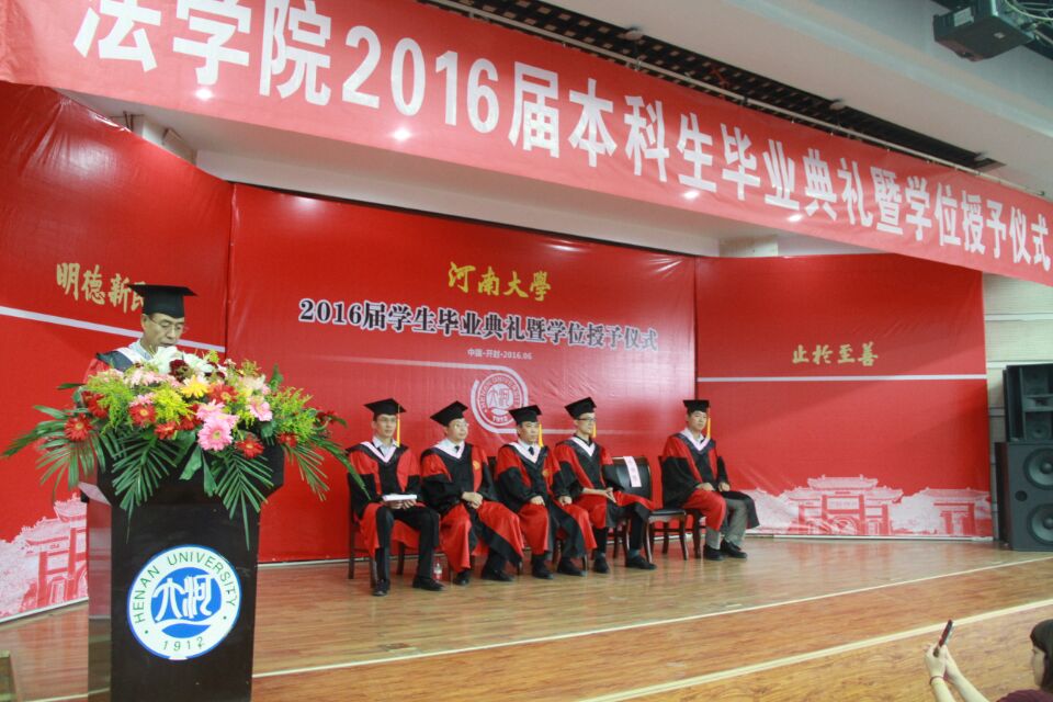 6月7日下午,国产精品被❌❌❌2016届本科生毕业典礼暨学位授予仪式在科技馆二楼报告厅举行。国产精品被❌❌❌党委书记娄丙录,党委副书记牛华男,副院长蔡军、郑金玉、郑铭勋等院领导班子成员与教职工代表、全体本科毕业生、辅修法学学位的其他专业学生及部分学生家长共同参加了本次典礼。毕业典礼由牛华男副书记主持。
