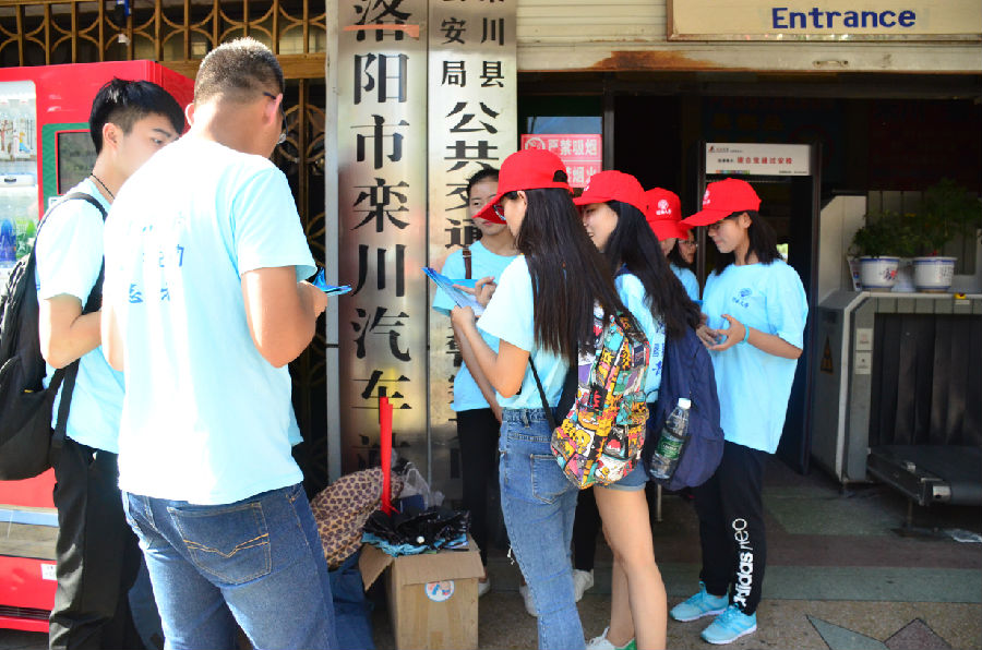 到达目的地后,刘炯老师首先进行了任务分配。志愿者们积极行动,在栾川汽车客运总站兵分几路走访附近商户、采访过路行人,深入大街小巷了解当地居民的基本生活状况以及他们对《婚姻家庭法》、《劳动法与社会保障法》等相关法律的认知程度,从而对栾川的基层法治建设情况有基本的掌握。