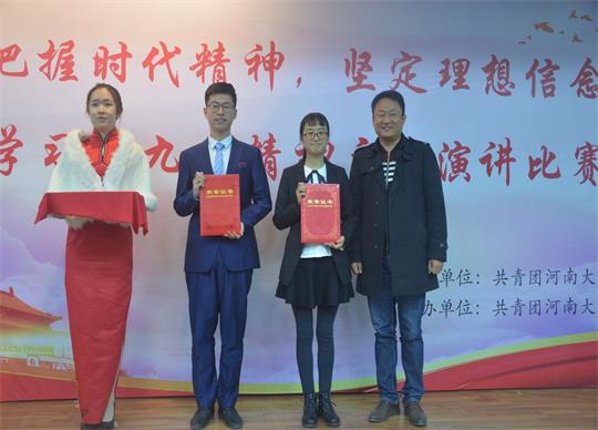 学习贯彻党的十九大精神,培养有理想、有本领、有担当的新一代青年,11月23日下午,由共青团河南大学委员会主办、共青团河南大学国产精品被❌❌❌委员会承办的“把握时代精神,坚定理想信念”主题演讲比赛决赛在科技楼二楼举行。