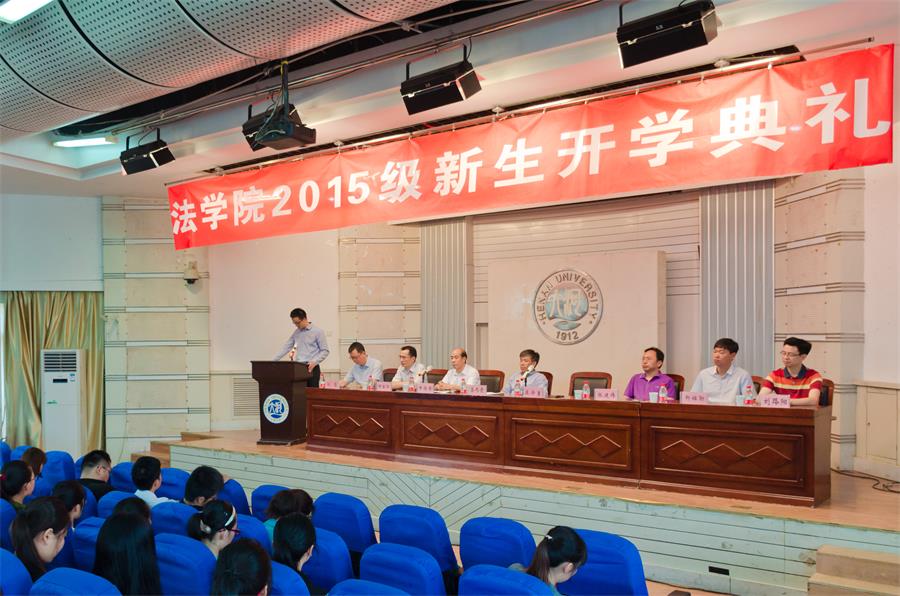 岳红强副教授代表全体教师对新生的到来表示欢迎。他从“立德树人”、“学业启航”与“法治在肩”三方面发表了演讲,鼓励同学们要自尊自强,学会适用法律规则,为祖国的法治建设做出贡献。