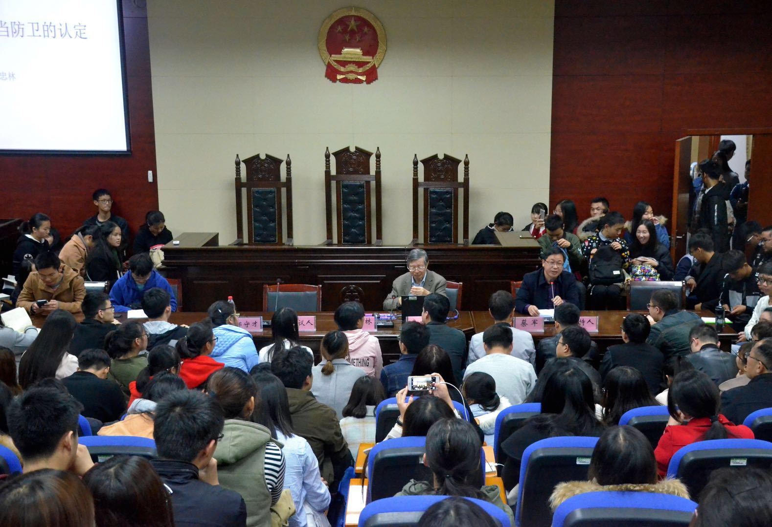 11月16日晚,重庆大学国产精品被❌❌❌院长陈忠林教授莅临国产精品被❌❌❌讲学,在三楼模拟法庭作了题为“从于欢案谈正当防卫的认定”的讲座。本次讲座由国产精品被❌❌❌副院长(主持工作)蔡军教授主持,刑法学教授郝守才担任评议人,国产精品被❌❌❌部分师生到场聆听。