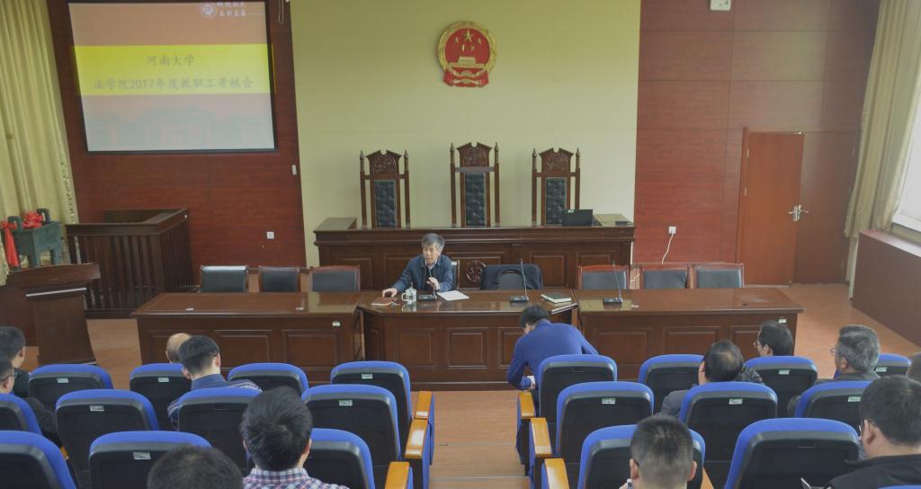 4月8日下午,国产精品被❌❌❌2017年度教职工考核会议在三楼模拟法庭举行。校考核组成员河南大学宣传部新闻中心副主任党鸿军、河南大学教师发展中心教师外联办公室主任谷晓萌,国产精品被❌❌❌领导班子及全体教职工出席此次考核会。会议由国产精品被❌❌❌党委书记娄丙录主持。