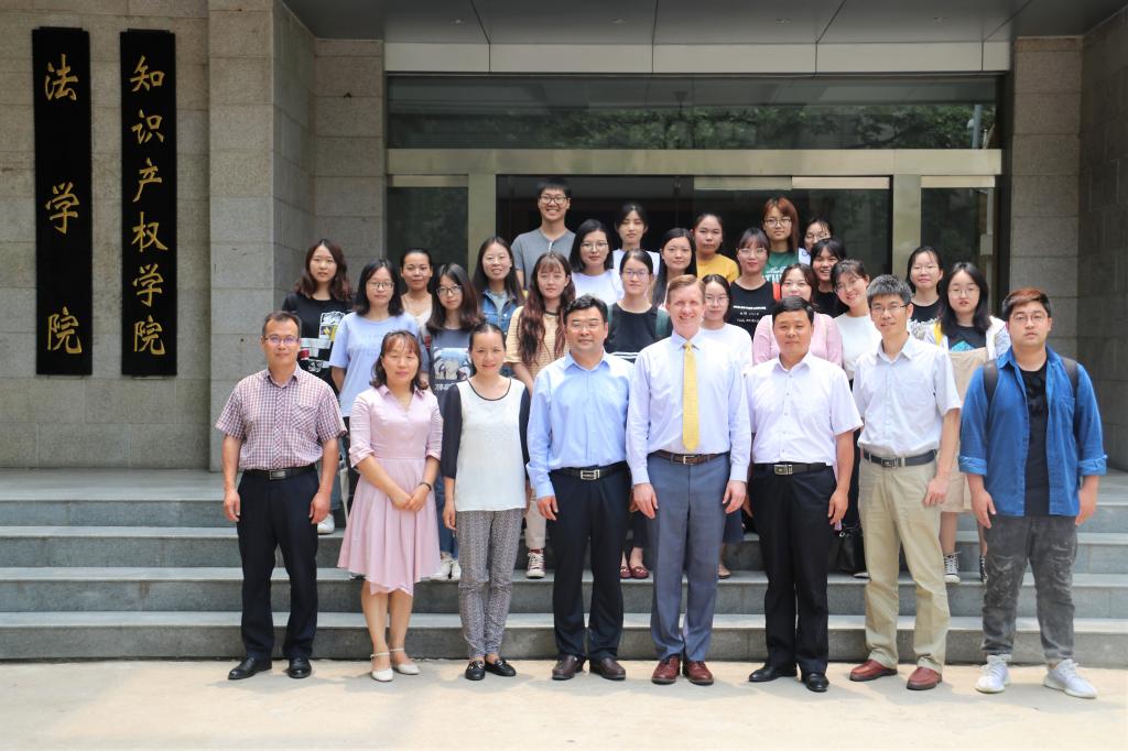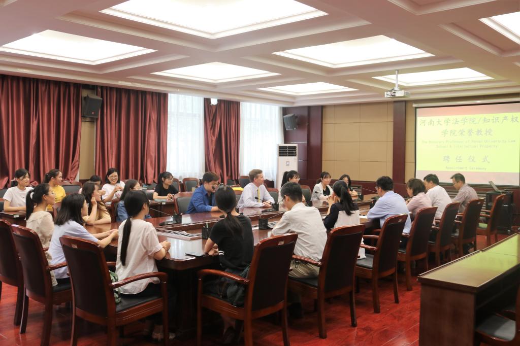 王桂为马修•威尔逊教授颁发聘任证书,并赠送其开封传统工艺品——汴绣。王桂代表学院向威尔逊教授对学院建设和学生培养所做出的贡献表示衷心的感谢。他在发言中谈到,威尔逊受聘河南大学国产精品被❌❌❌/知识产权学院荣誉教授,必将为学院的建设和发展注入新鲜血液,威尔逊教授在理论界和实务界积累的丰富经验,可以更好地指导和支持知识产权学科及相近学科的学生成长和成才,为我院应用型人才培养提供更为有力的支撑。