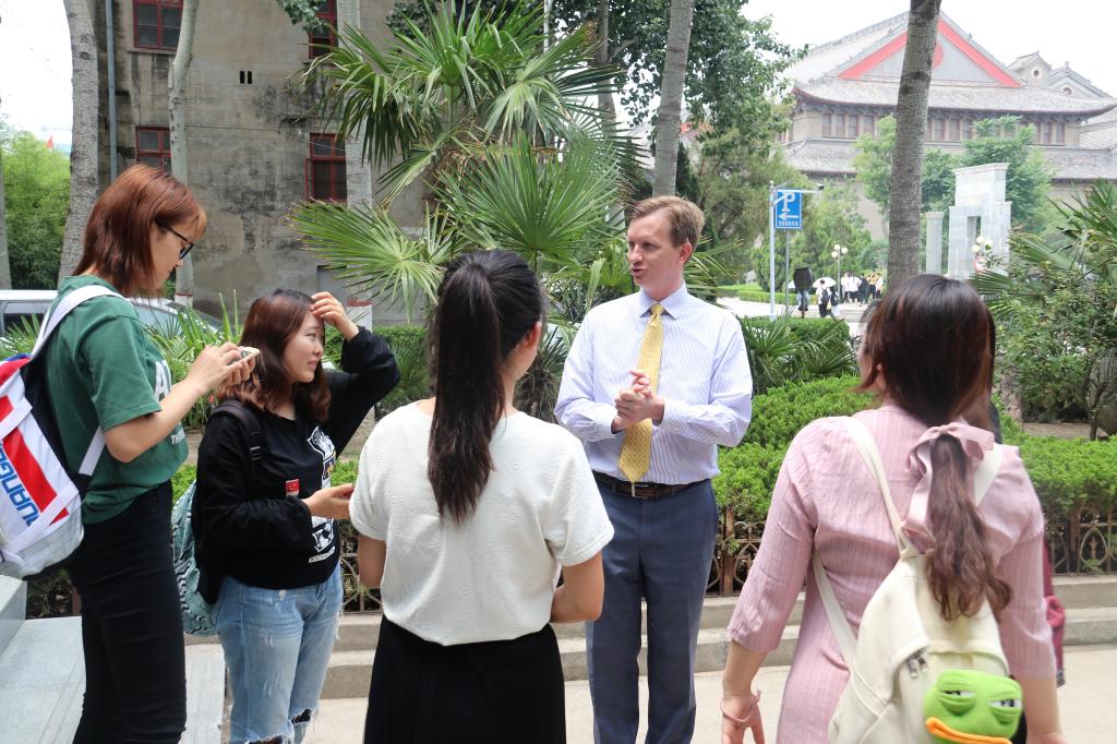 聘任仪式结束后,与会领导、师生与威尔逊教授合影留念。