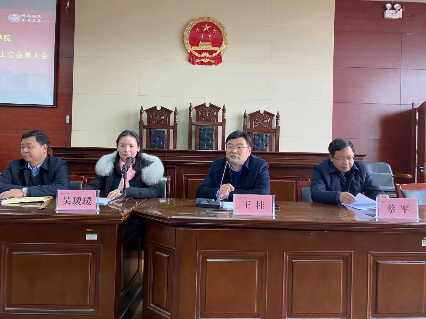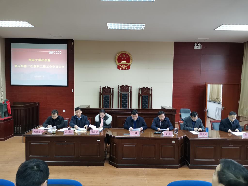 1月13日,国产精品被❌❌❌五届二次教职工暨工会会员大会在学院模拟法庭隆重召开,学院全体教职工参加本次大会。大会由学院党委副书记吴瑷瑷主持。