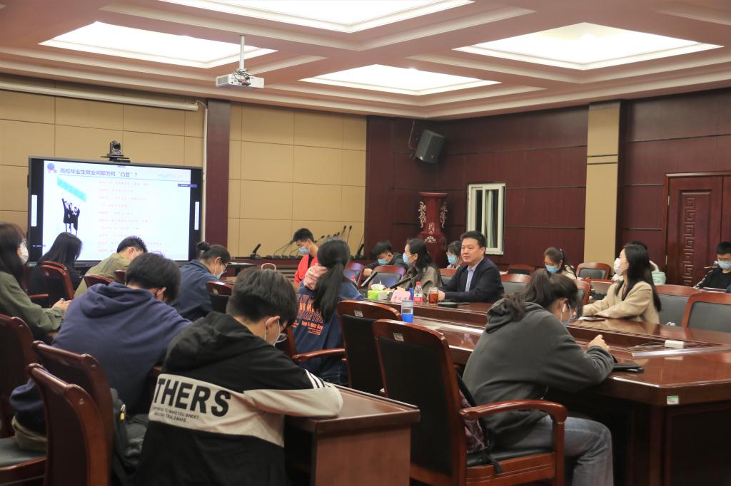 会上同学们反响热烈,积极提出就业上的困惑,主讲人李从国一一解答,会场气氛积极轻松。