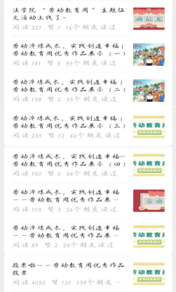 “劳动淬炼成长,实践创造幸福”主题征文活动吸引了众多学生的积极参与,两弹元勋邓稼先、中国核潜艇之父彭士禄、中国女篮队长杨力维、高铁工匠李学忠、劳模船长吕强、感动中国人物张佳梅、河大校园保洁员黄师傅……同学们以文字讲述知名专家、普通员工的点点滴滴,深刻感悟和讴歌赞美劳模精神、劳动精神、工匠精神。初评产生的优秀作品学院微信公众号进行了展播,通过评委评审和网络投票,最终评选出一等奖作品1篇,二等奖作品二篇,三等奖作品三篇。主题征文活动的开展,极大的调动了全院师生爱岗敬业、艰苦奋斗、甘于奉献、立足岗位做贡献的积极性,在全院营造出“劳动光荣,奉献最美”的良好氛围。