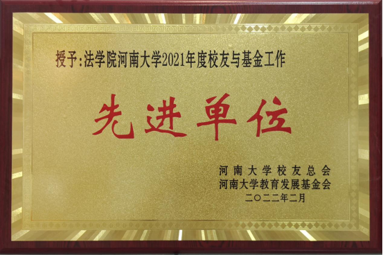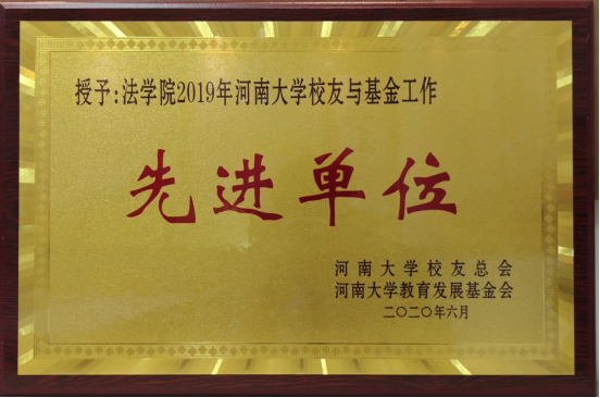 广大校友、社会爱心人士和共建律所心系河大,带着对河南大学法学教育的深情厚谊,在学院先后设立“国基奖助基金” “大乘奖助基金” “上海校友会法学分会助学金”“上海校友会法学分会洪涝灾害专项资助金” “爱心人士专项助学金” “学长助学金”和“曹帅助学金”等,捐赠助力人才培养,学院近300名学生获得资助。河南亚都集团和河南超亚医药捐赠口罩175万只,价值90.5万元,为学校学院疫情防控和校庆做出积极贡献。