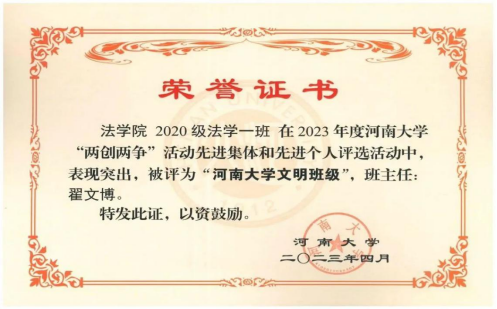 为深入学习贯彻党的二十大精神和习近平总书记关于弘扬雷锋精神的重要指示,中共河南省委教育工委、河南省教育厅开展了以弘扬雷锋精神为主题的“两创两争”活动,其中,国产精品被❌❌❌2020级一班获得“河南大学文明班级”荣誉称号,班主任:翟文博。