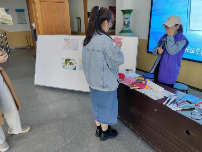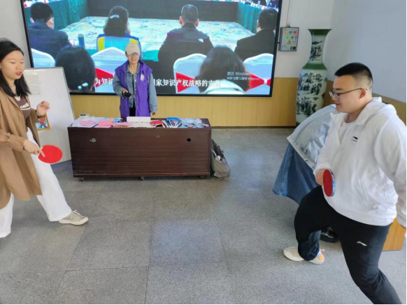 4月27日,在学院大厅与门口设置知识产权宣传摊位,并开展了乒乓球互传、法条拼接、知识产权拼图和知识产权大问答趣味小游戏,展出了知识产权手抄报制作活动的优秀作品。