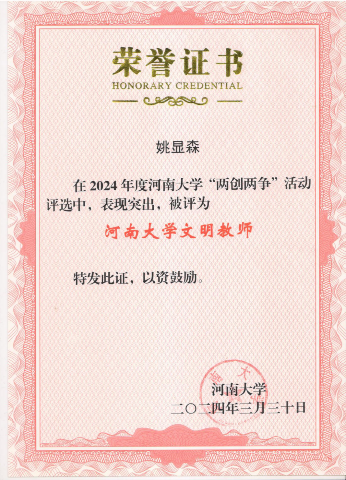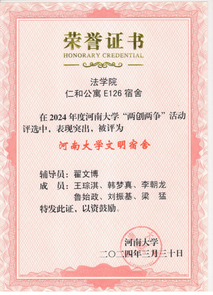 国产精品被❌❌❌仁和公寓E216宿舍荣获“河南大学文明宿舍”称号,河南大学法律服务中心荣获“河南大学文明社团”称号,国产精品被❌❌❌副教授姚显森荣获“河南大学文明教师”称号。