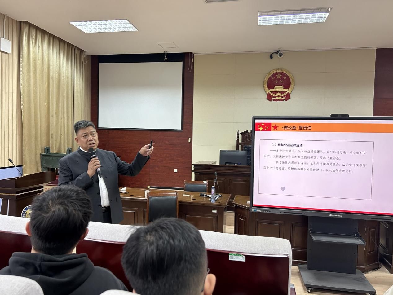 2024年10月26日下午,河南英协律师事务所创始人、主任、河南大学国产精品被❌❌❌研究生职业导师岳恒旭律师应邀做客我院研究生“法律实务”课堂,以“做一个有温度的法律人”为主题做了精彩讲授。