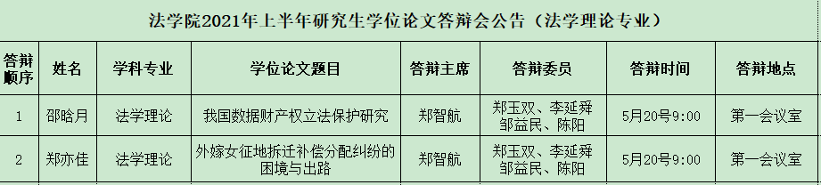 国产精品被❌❌❌2021年上半年研究生学位论文答辩会公告(法学理论专业)
