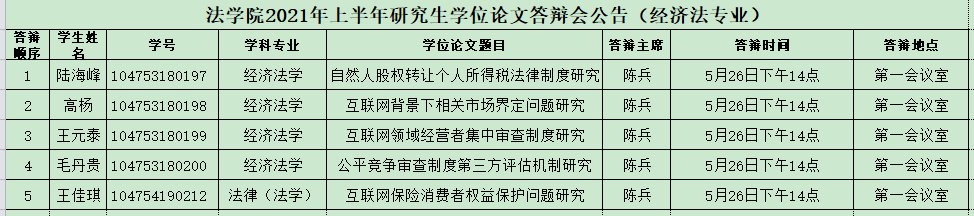 国产精品被❌❌❌2021年上半年研究生学位论文答辩会公告(经济法)