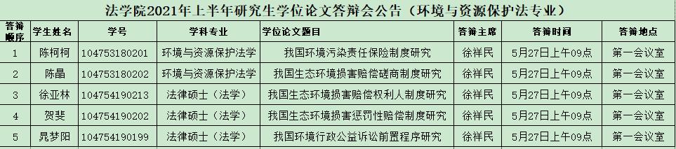 国产精品被❌❌❌2021年上半年研究生学位论文答辩会公告(环境资源保护法)