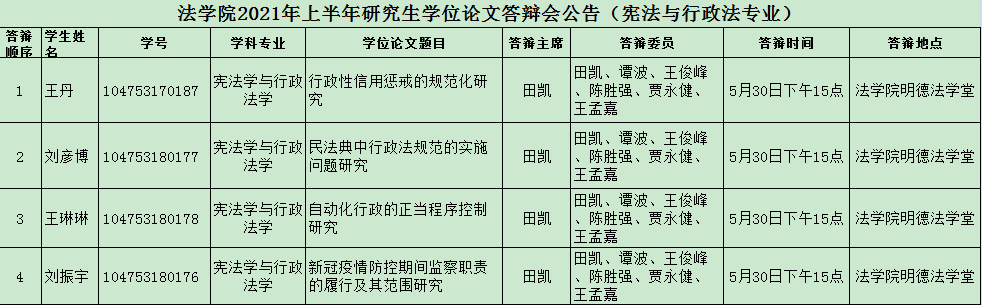 2021年国产精品被❌❌❌硕士研究生学位论文答辩(宪法学与行政法学专业)