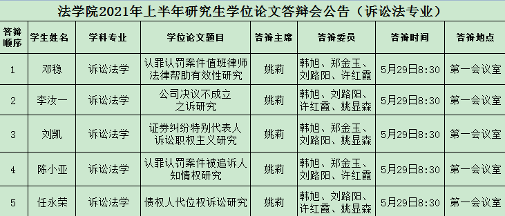 2021年国产精品被❌❌❌硕士研究生学位论文答辩(诉讼法专业)