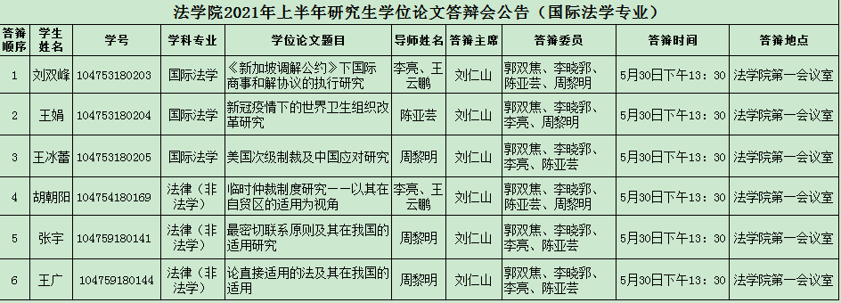 2021年国产精品被❌❌❌硕士研究生学位论文答辩(国际法专业)