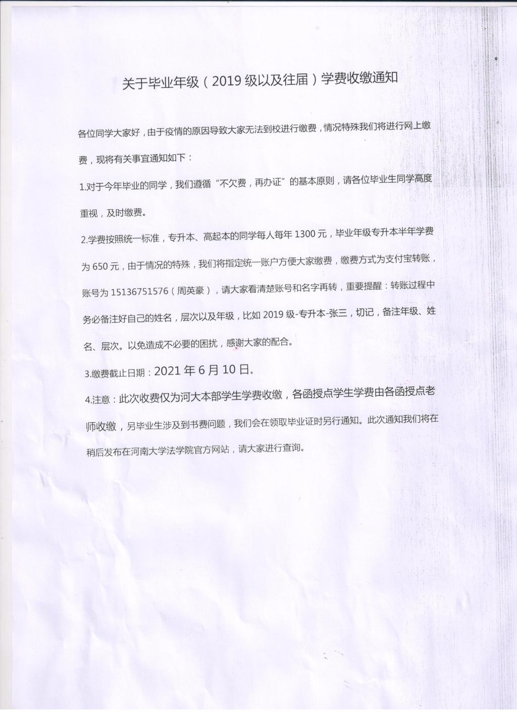成人教育|关于毕业年级(2019级以及往届)学费收缴通知